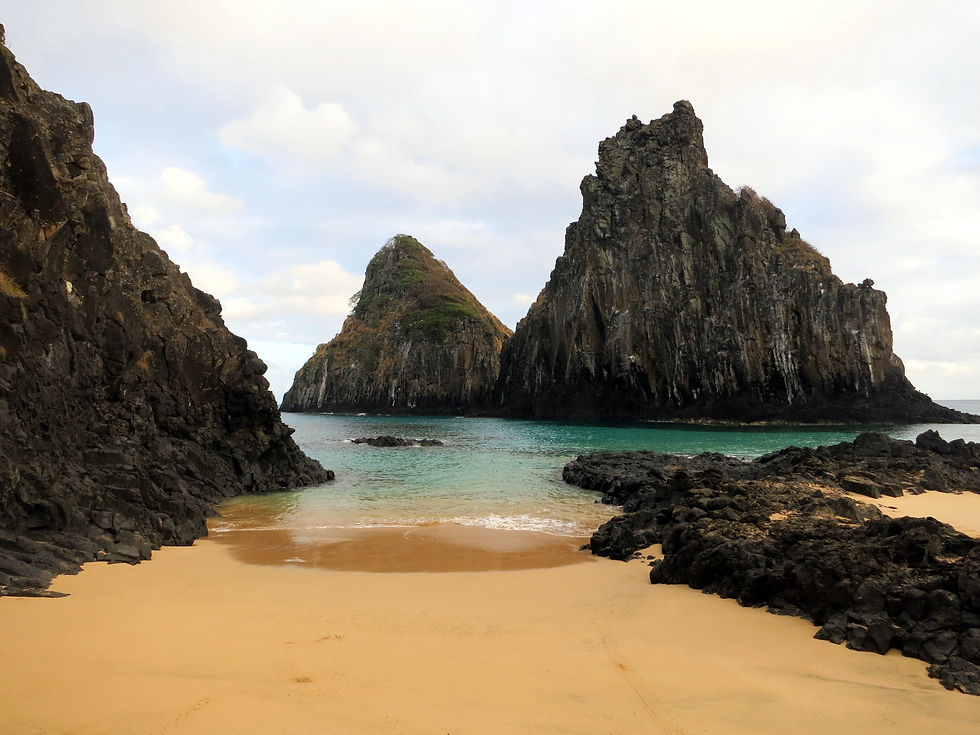 Quem segue por mais 282 metros de caminhada chega a outro cenário impactante, a Baía dos Porcos, onde se localiza o clássico Morro Dois Irmãos.